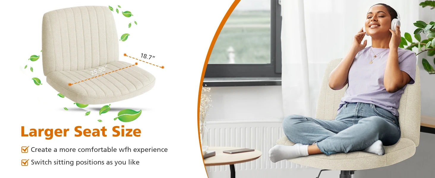 MBM Premium Armless Office Chair – Your Cross-Legged, Wide-Seat Haven for Work and Relaxation